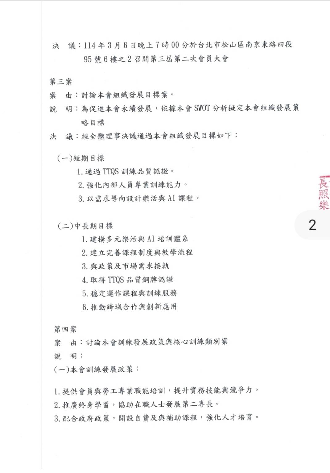 決 議:經全體理事決議通過本會組織發展目標如下: