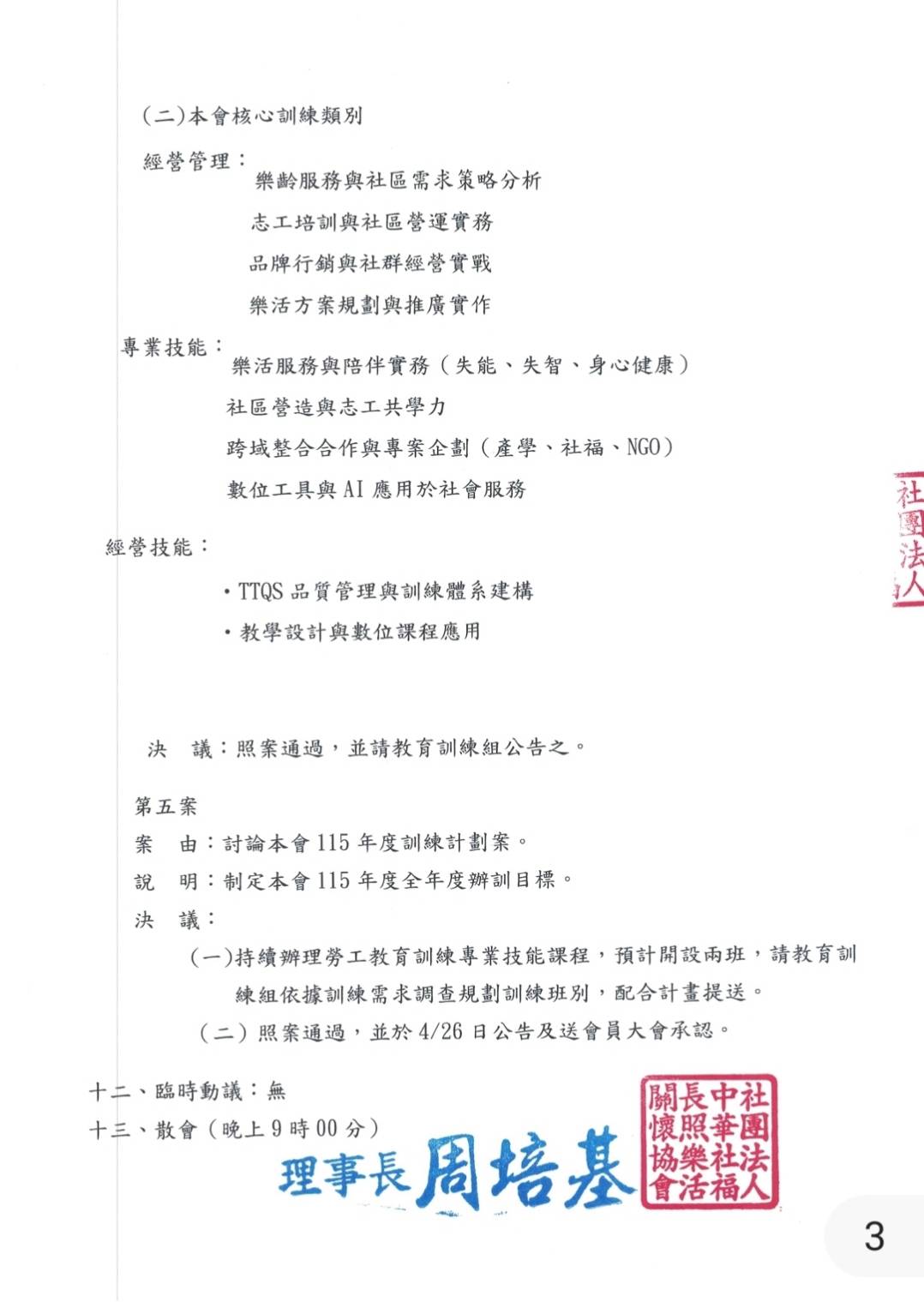 案 由:討論本會訓練發展政策與核心訓練類別案